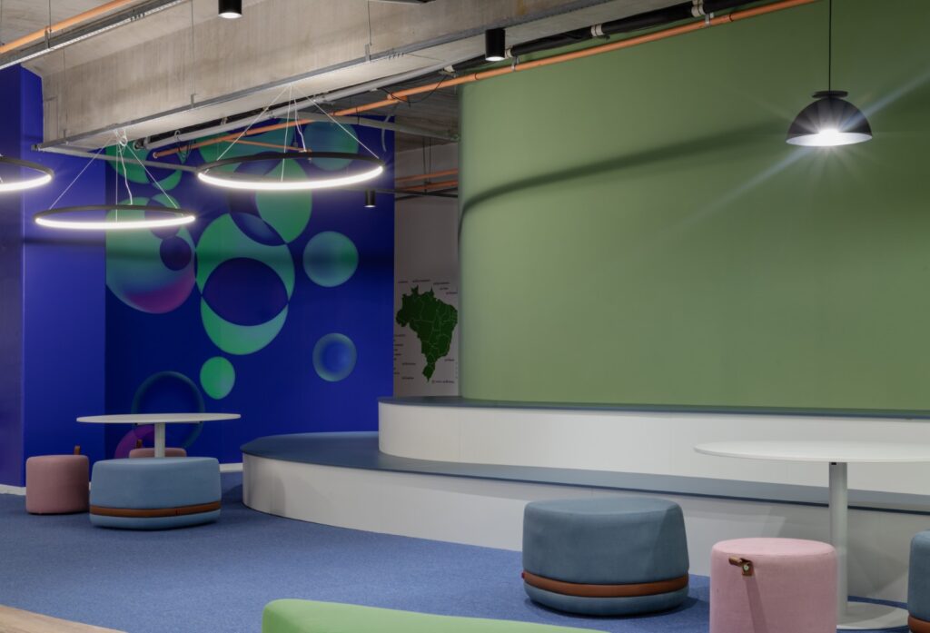 O projeto propõe a implantação de um Hub de Inovação para uma empresa de infraestrutura e saneamento básico, concebido a partir de um amplo processo de pesquisa e entendimento das dinâmicas de uso do espaço. A proposta organiza o ambiente em dois núcleos principais: uma área formal, dedicada às salas de reunião, e uma área aberta de coworking, equipada com mobiliários adaptáveis que permitem diferentes configurações de trabalho, encontros informais ou reuniões mais reservadas.