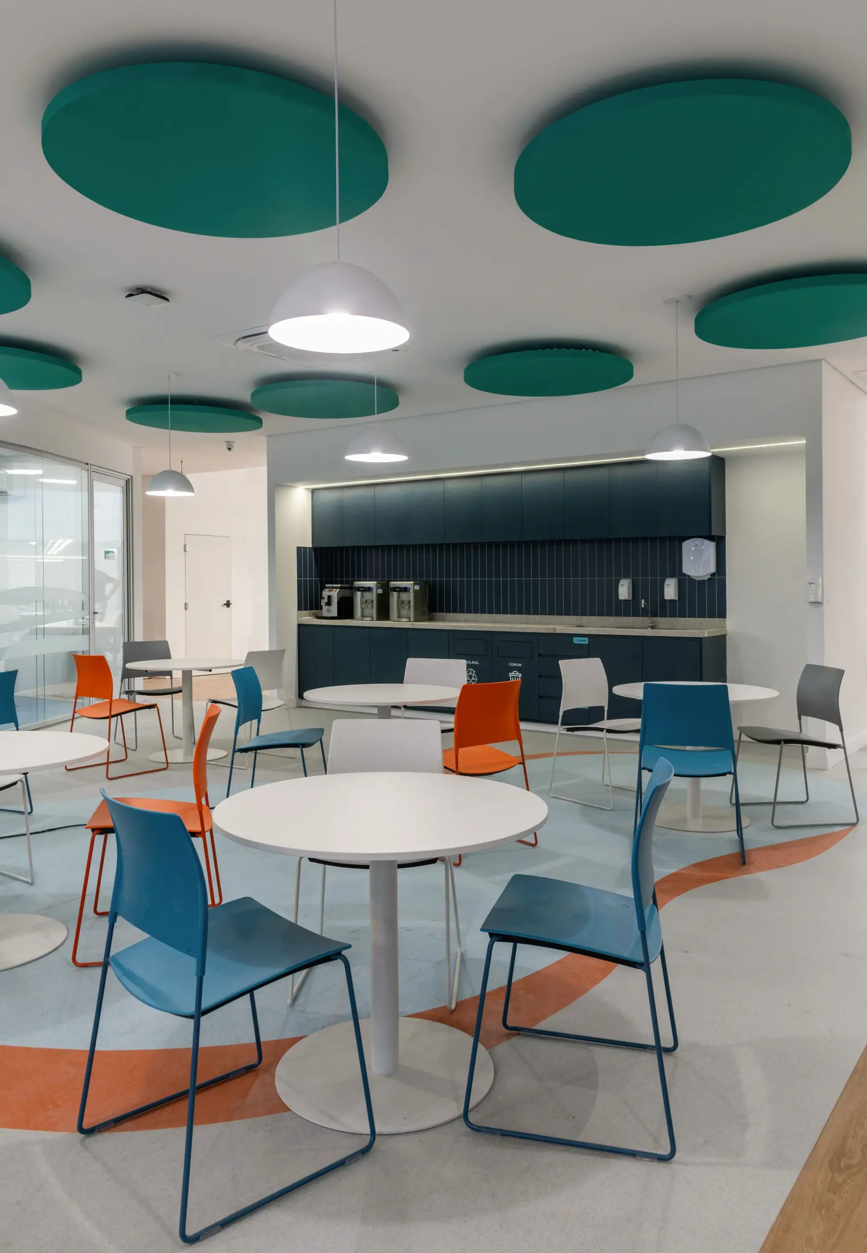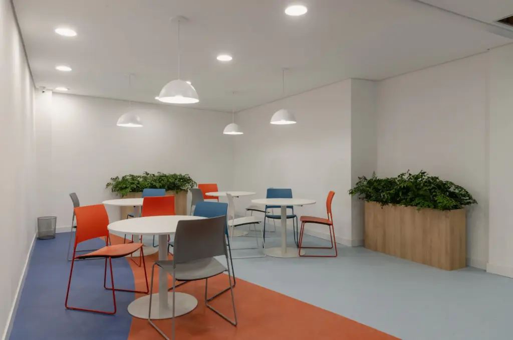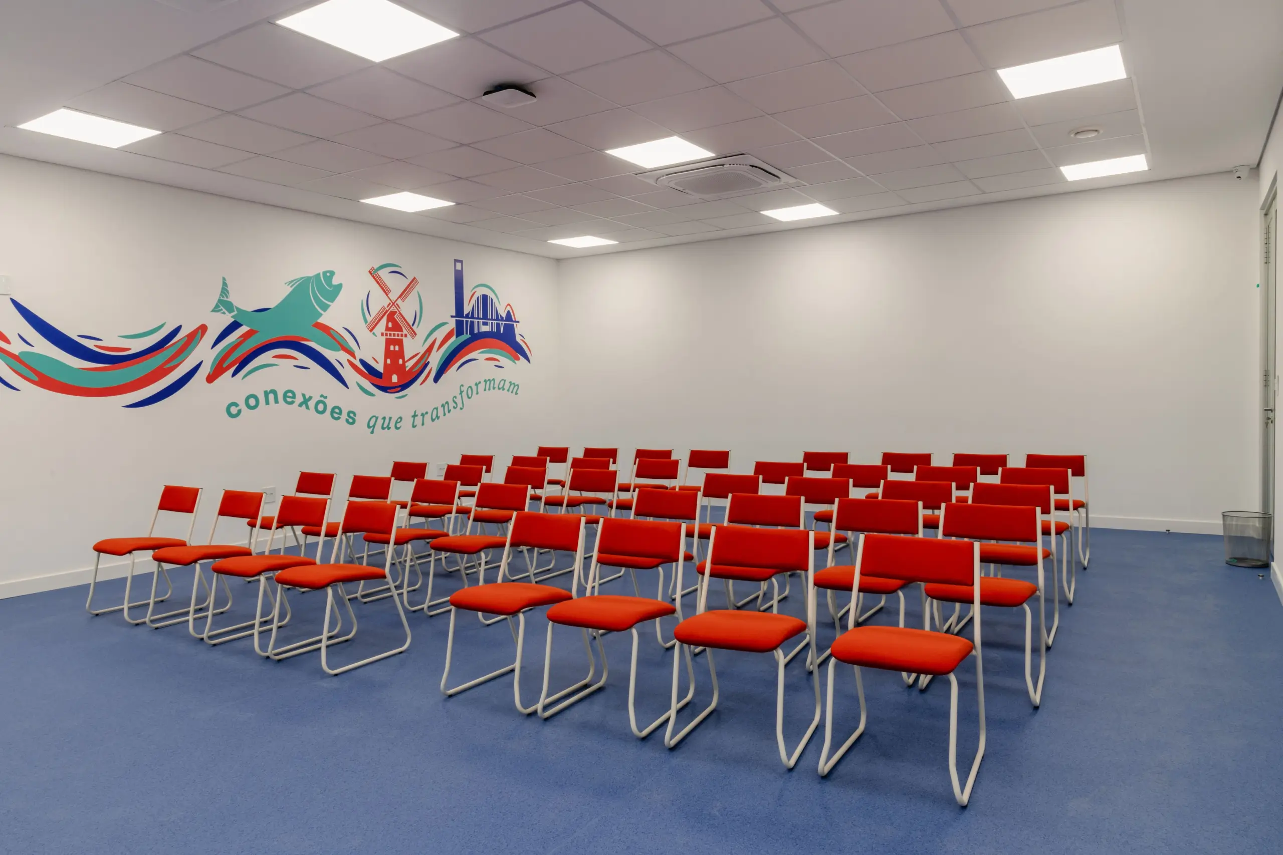A concepção arquitetônica inclui espaços de convivência e ambientes para reuniões informais, pensados como zonas de encontro, colaboração espontânea e suporte às rotinas diárias. Para atender às demandas de eventos, treinamentos, apresentações e atividades institucionais, o conjunto conta ainda com um auditório multifuncional, projetado para oferecer conforto, flexibilidade e infraestrutura técnica adequada, consolidando o edifício como um polo de integração, aprendizado e representação corporativa.